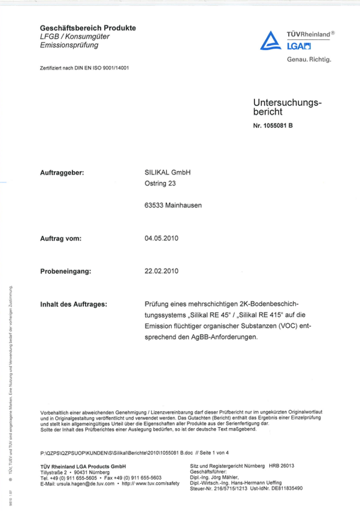 Declaration of performance SILIKAL System AgBB