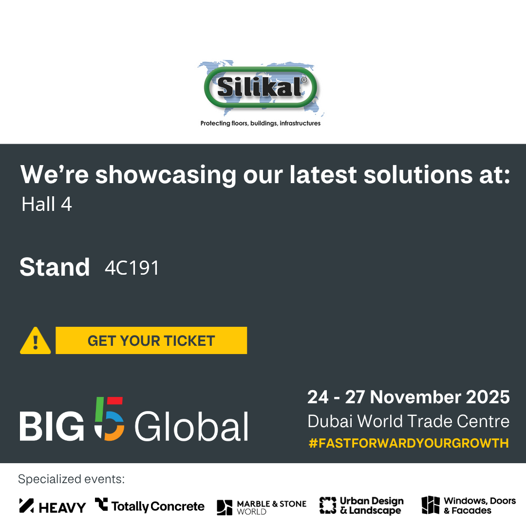 Vom 26. bis 29. November 2025 sind wir wieder bei der „BIG5 Global“ in Dubai vertreten. Der Name ist Programm und so freut sich unser Team von Middle East Construction Chemicals LLC auf diese weit über die Region bekannte und wichtige Baumesse. Auf neue und bekannte Gesichter und auf Kunden, die mit unseren Produkten weiterhin anspruchsvolle Projekte umsetzen. Mit den über 2800 erwarteten Ausstellern sind wir in bester Gesellschaft. Und zeigen gern unsere leistungsfähige Produktvielfalt für Bau- und Infrastrukturprojekte – unsere MMA-Abdichtungen und die Fußbodenbeschichtungen, aber auch die Mörtelsysteme und Straßenmarkierungen. Sprechen Sie uns! BIG 5 Global, Dubai, Messestand: 4C191.