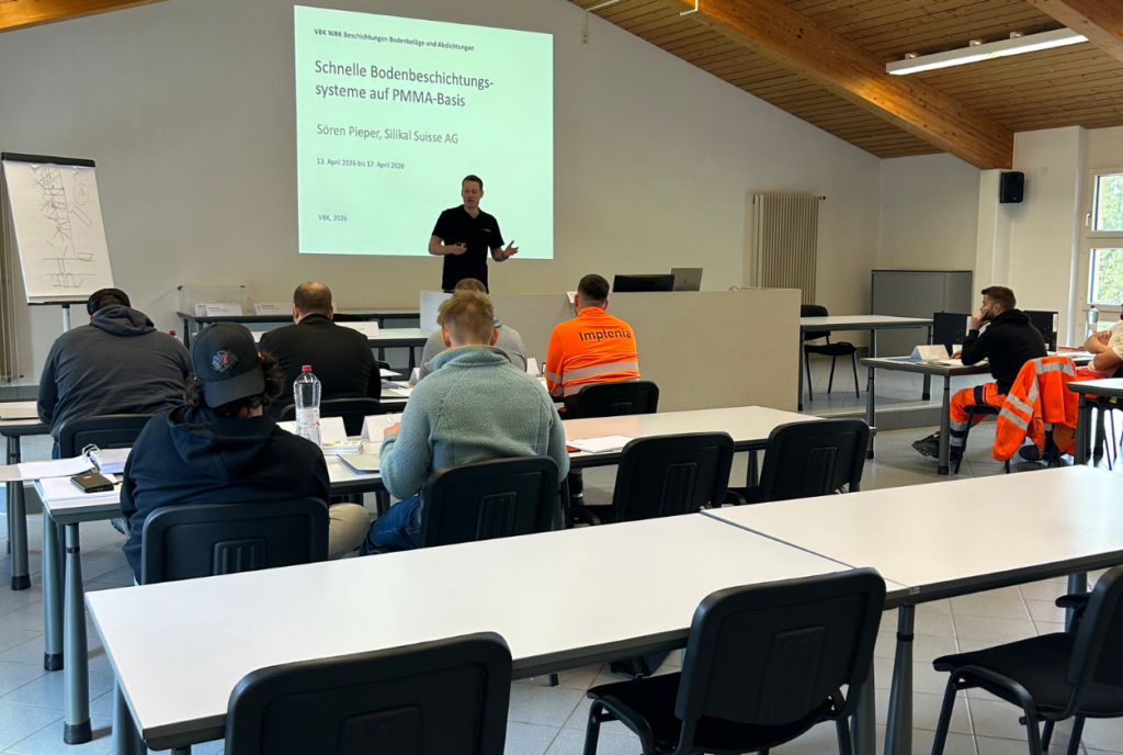 Der Weiterbildungskurs „Beschichtungen, Bodenbeläge und Abdichtungen“ des VBK (Schweizerischer Verband Bautenschutz / Kunststofftechnik am Bau) ist ein jährlicher fester Bestandteil im Weiterbildungskalender der Branche. Als langjähriges Mitglied des Verbandes begleitet Silikal-Suisse diesen Kurs bereits seit vielen Jahren – eine Zusammenarbeit, die auf gegenseitigem Engagement und Fachkompetenz basiert. Vergangene Woche war es wieder soweit: Unsere Kollegen in der Schweiz unterstützten den diesjährigen Kursdurchgang und brachten ihr Fachwissen direkt zu den Teilnehmenden.